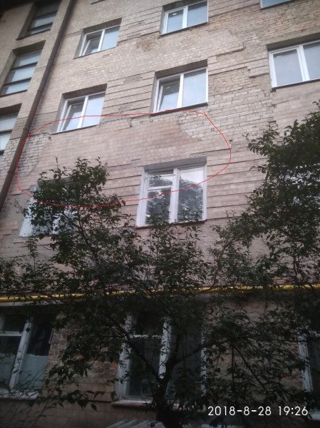 Він зазначає, що плитка шматками відколюється та б'є вікна квартир. Окрім того, є загроза того, що плитка впаде комусь на голову, тому що знизу – під'їзд.