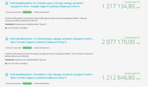 Інформація про закупівлі розміщена на Prozorro. Договори уклали із фірмою, яка вже «ремонтувала» школи цього району і має кримінальну історію, - пише Громадське Волинь.
