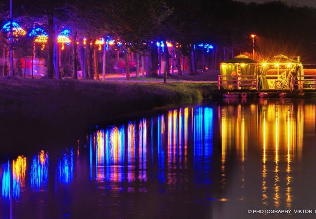 Луцький фотограф Віктор Петрук показав, як виглядає Центральний парк культури та відпочинку імені Лесі Українки з настанням сутінок.