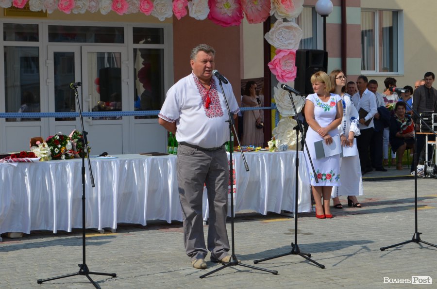 День знань у новозбудованій школі відкрив директор Віталій Бондар. Спочатку усі присутні виконали гімн, опісля - вшанували полеглих Героїв хвилиною мовчання.