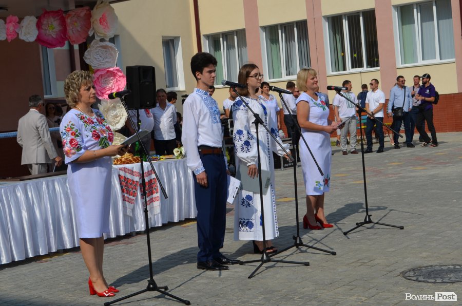 Опісля директор ліцею разом з учнями урочисто перерізали стрічку і школярі вирушили у новенькі класи на перший урок.