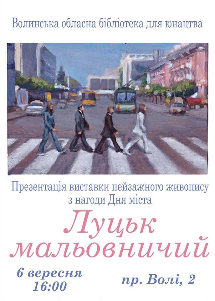 Презентація виставки живопису, приуроченої до дня міста, відбудеться 6 вересня. Експозицію "Луцьк живописний можна буде переглянути у приміщенні бібліотеки, що на проспекті Волі, 2.