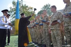 Поблагословив курсантів отець Миколай зі Свято-Юріївського храму. Священик окропив шеренги свяченою водою та побажав дітям успіхів.