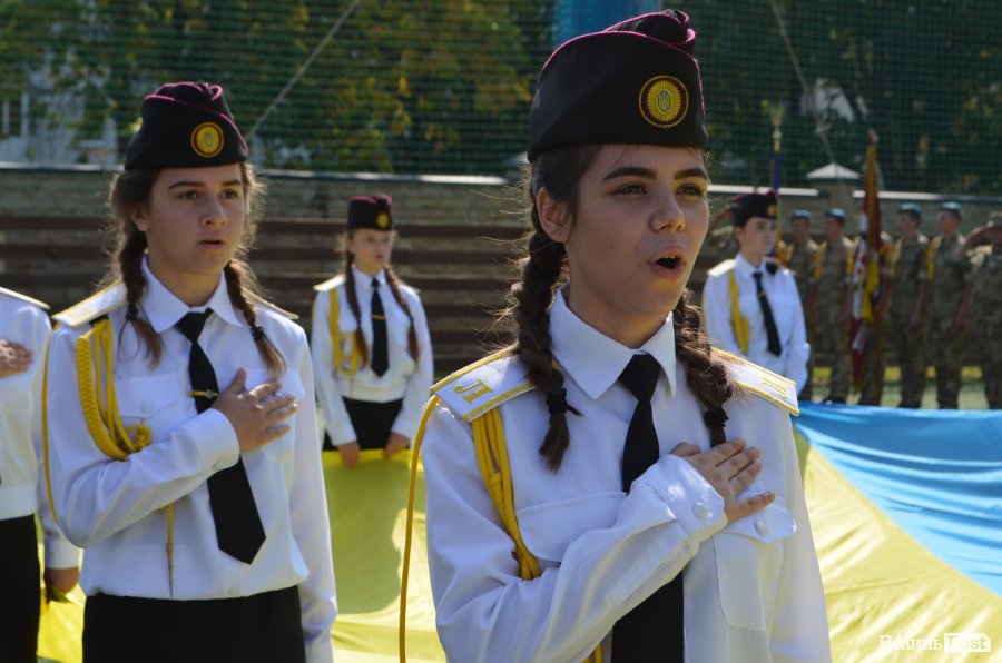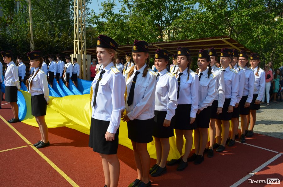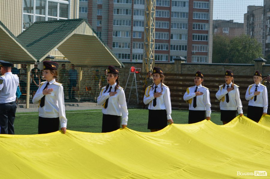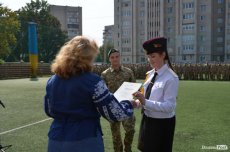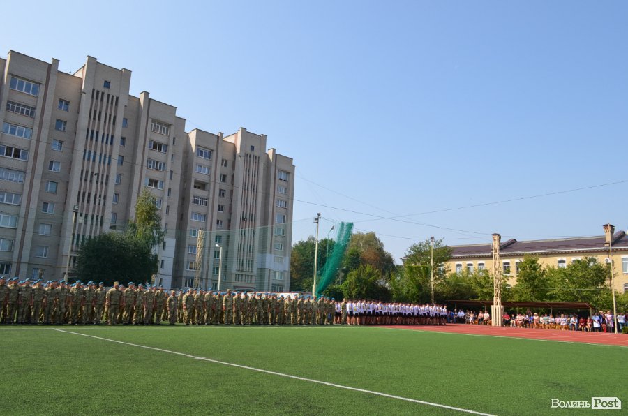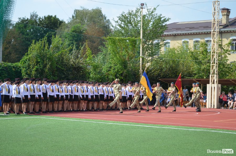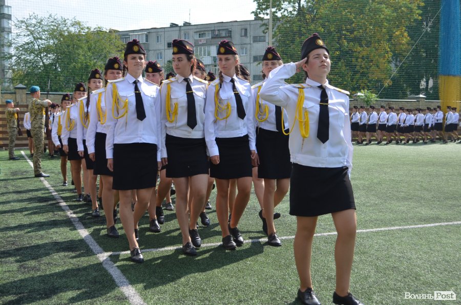 Спортивне поле у закладі із самого ранку заповнили серйозні юнаки у камуфляжній формі та усміхнені дівчата у курсантських строях. Кілька сотень вихованців вишикувалися у передчутті першого дзвоника.