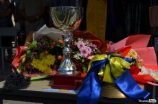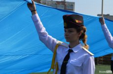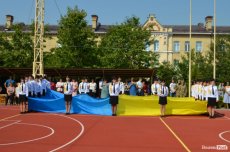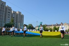 Опісля урочисто внесли державний прапор та стяг ліцею. Вихованці закладу винесли на поле величезний синьо-жовтий прапор, після чого всі виконали Гімн України.