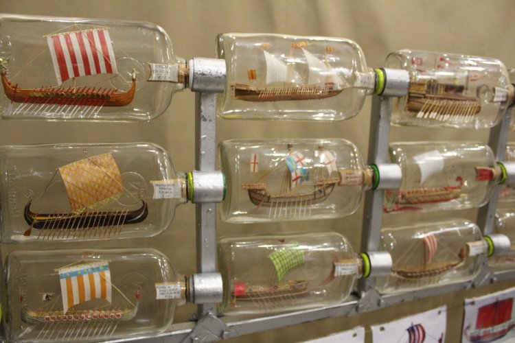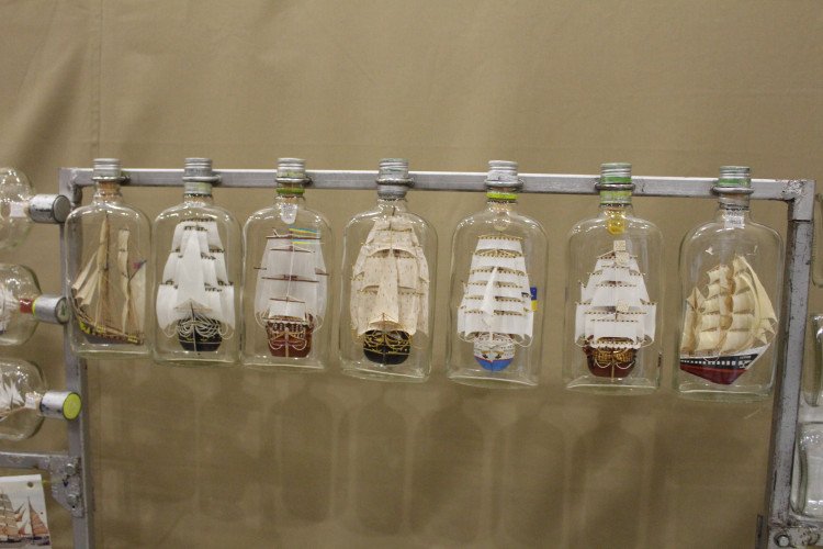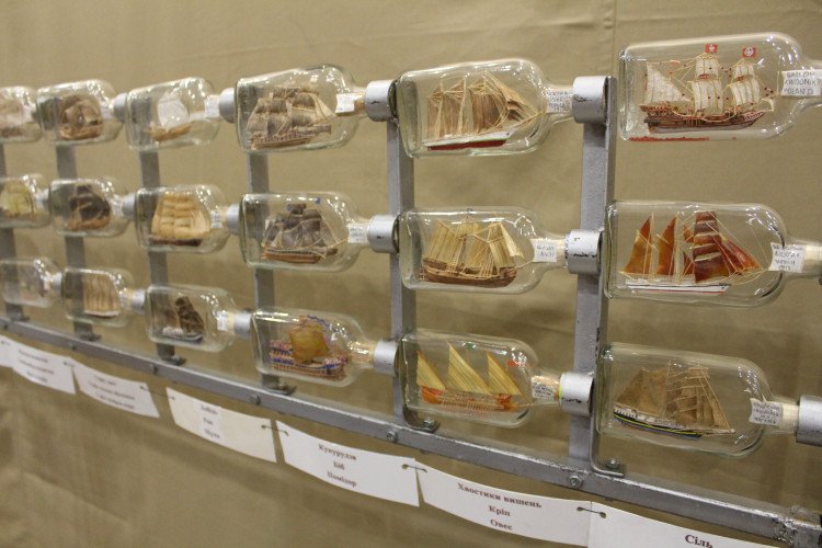 Особливість експонатів полягає в тому, що всі вони - у скляних пляшках. Автор знає багато секретів майстерності у виготовленні подібних мініатюр, освоїв нові способи кріплення кораблів: до капронової нитки, натягнутої всередині, бушпритом до корка, підвішування на одній та двох волосинах, на площину з бісеру.