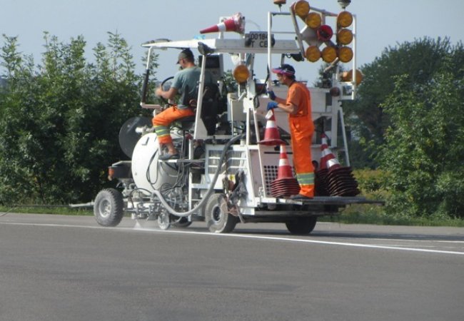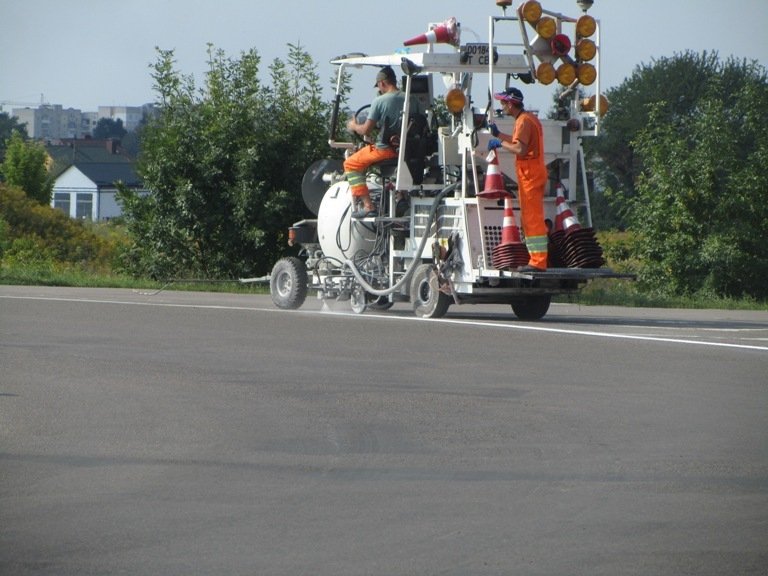 На автодорозі М-19 Доманове (на м. Брест) — Ковель — Чернівці — Тереблече (на м. Бухарест) на підїзді до міста Луцька підрядна організація ТОВ "ТРАНС ЛАЙН ГРУП" проводить нанесення розмітки за допомогою прогресивної технології – структурного нанесення холодного пластику.