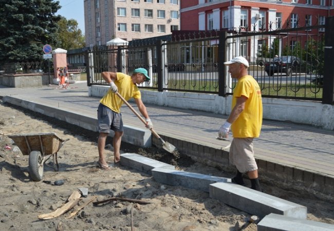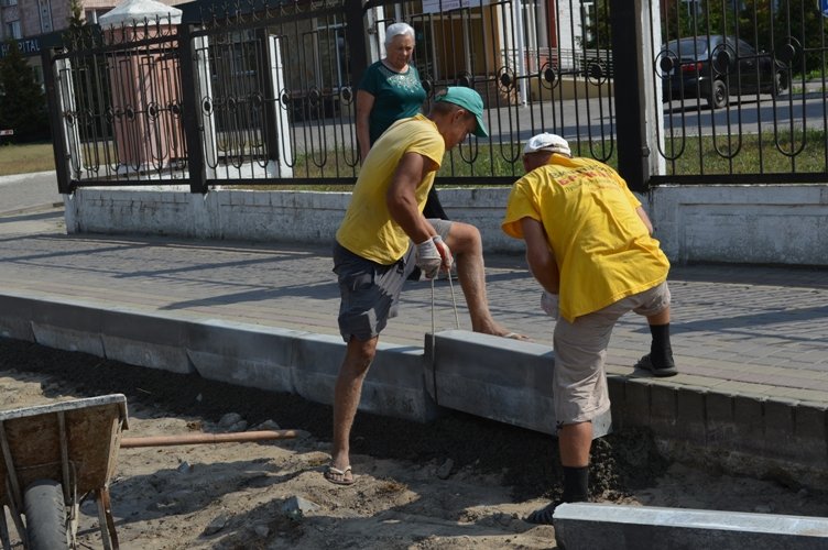Також працює бригада на вулиці 40 років Перемоги (відрізок дороги біля ДНЗ №8). Там покращенням дорожнього полотна та будівництвом тротуару займається колектив ПрАТ «ШБУ-63».