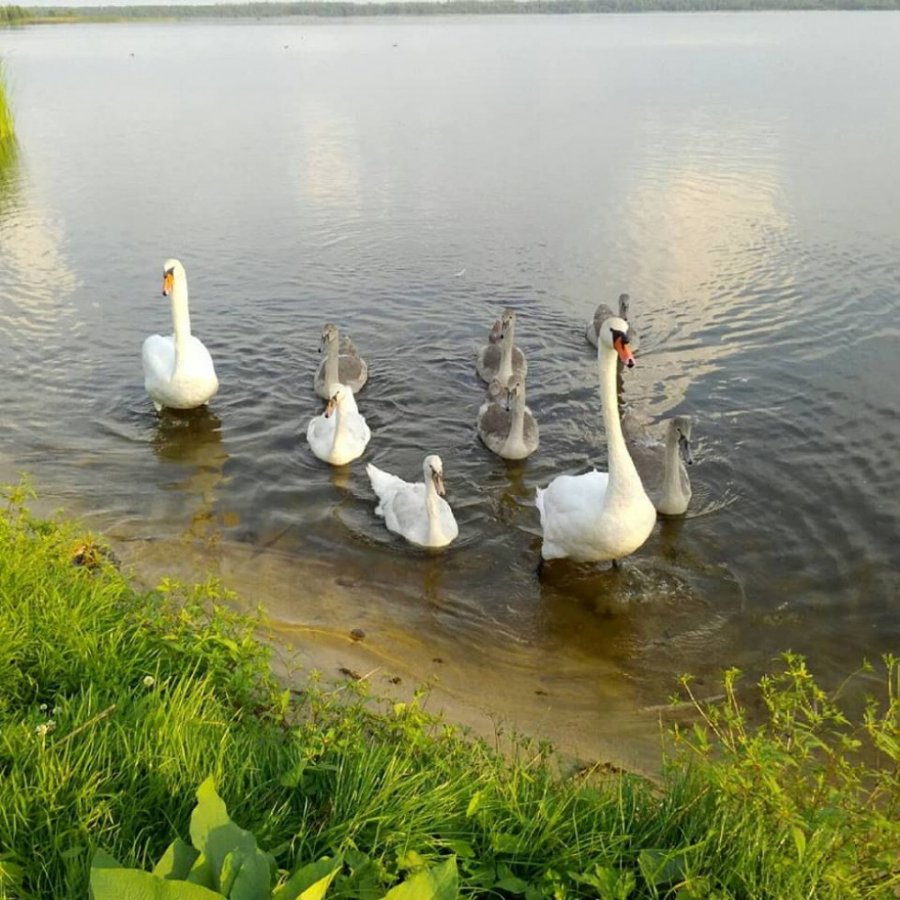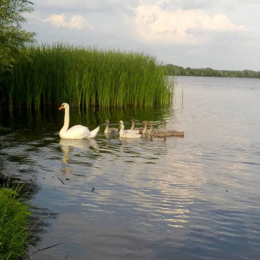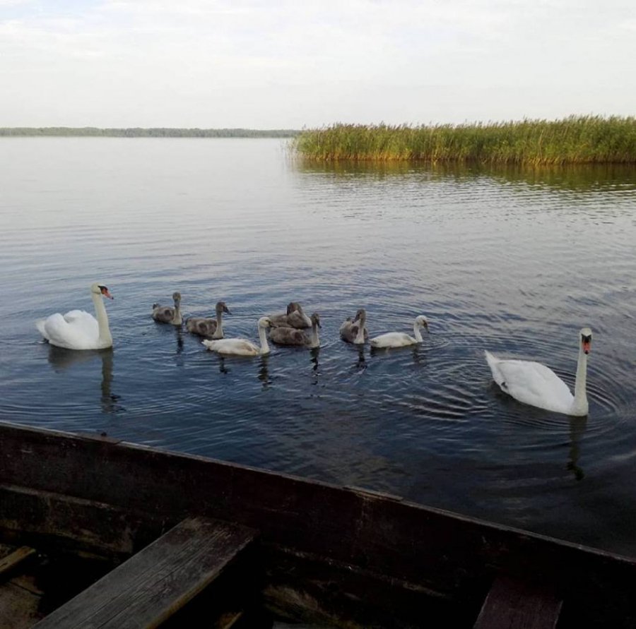 Протягом літа жителька Шацька Лариса Демакова знімкувала пару лебедій із сімома лебедятами на озері Люцимер.