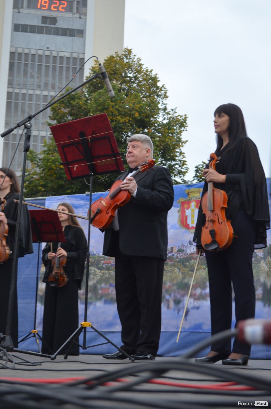Однак яскравим класичним завершенням вечора стали інструментальні виконання. Послухати камерний концерт на Театральному майдані зібралися декілька сотень містян. Концерт «Симфонія мого міста» розпочався і неперевершеного виступу колективу викладачів Волинського коледжу культури і мистецтв І.Ф Стравінського.