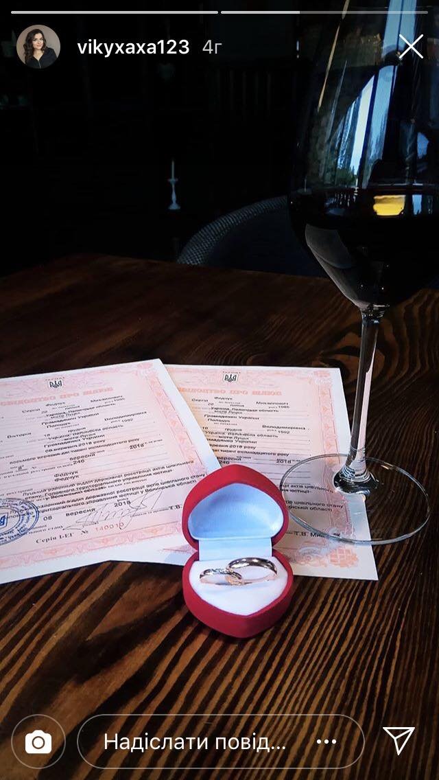 Пара узаконила стосунки 8 вересня. Режисерка поділилася знімком із весільними обручками та свідоцтвами про рестрацію шлюбу, а також виклала фото із своїм вже законним чоловіком.