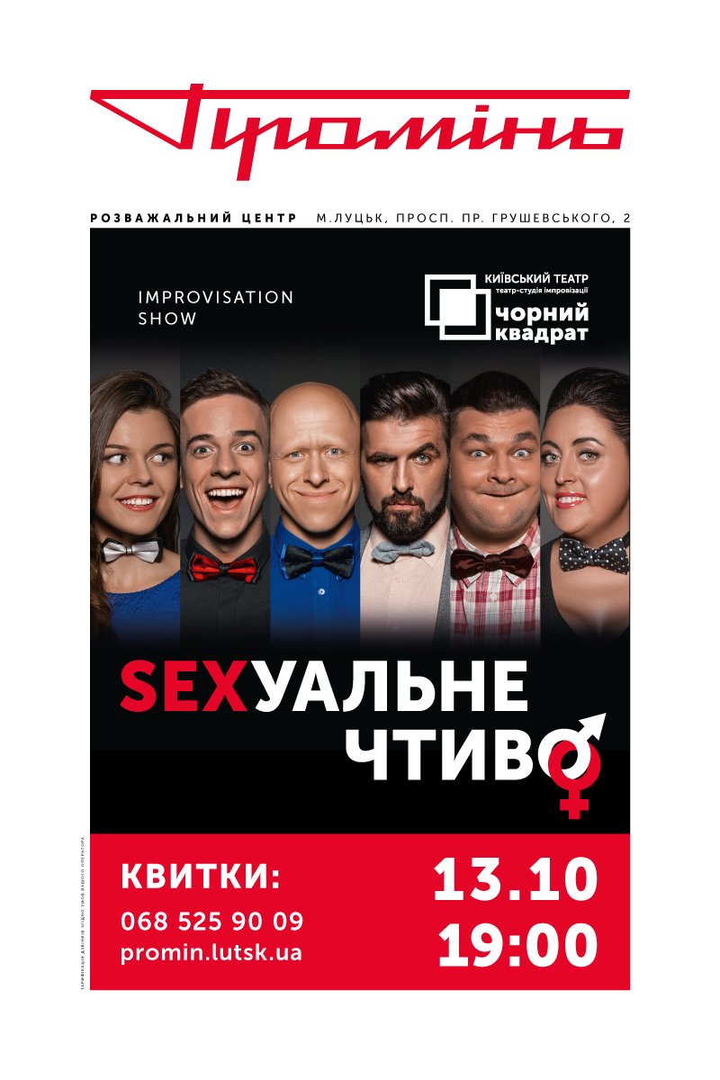 13 жовтня у РЦ «Промінь» відбудеться вистава «Сексуальне чтиво» від київського театру імпровізації «Чорний квадрат».