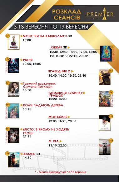 13 вересня у кінотеатрі Premier City аж 5 прем’єр фільмів. Обирай найкращий: