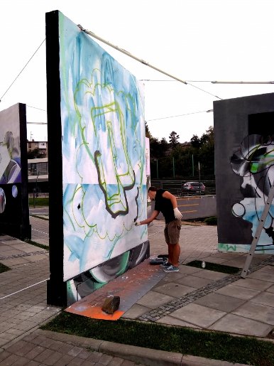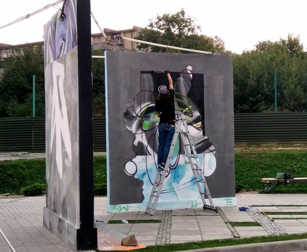 "Художник із великим досвідом у класичному графіті райтингу, націлений вийти за його межі – працювати у одній пластичній мові, та спробувати нові форми вираження, експериментуючи із різними формалістичними елементами шрифтів та графіті стилями. Таким чином Pakooner практикує створення різньостильових композицій в залежності від умов середовища, особистих настроїв та потрібних мотивів", – розповів Андрій Присяжнюк.