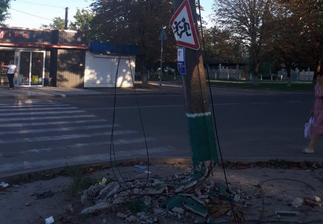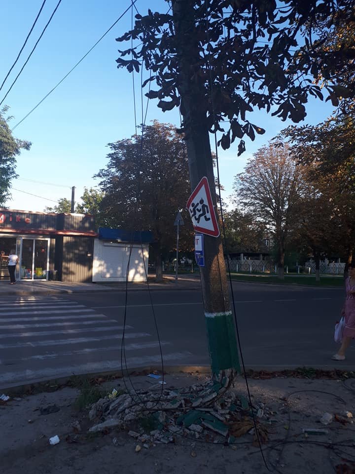 "Отой стовп, який тиждень тому чи більше пошкодило невідоме авто, так і хилиться над дорогою. І над пішохідним переходом. Правда до нього вчепили знак, але радикально вирішувати питання ніхто не збирається. Вул. Ковельська, неподалік від Нашого краю", - йдеться у повідомленні.