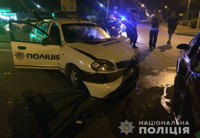 «Внаслідок ДТП обоє водіїв отримали забійні рани голови, крім того ще одному поліцейському, який перебував у авто, в око потрапило скло. Кермувальники двох транспортних засобів були тверезі», - зазначили в поліції.
