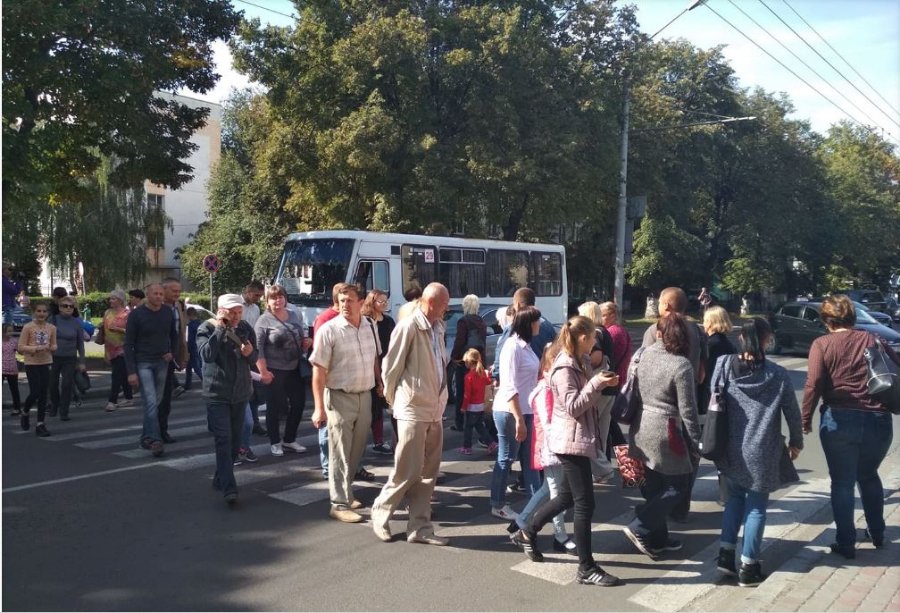 Розчаровані люди вирішили перекрити дорогу на проспекті Волі. Мітингарі ходять по пішохідному переході неподалік міської лікарні № 1.