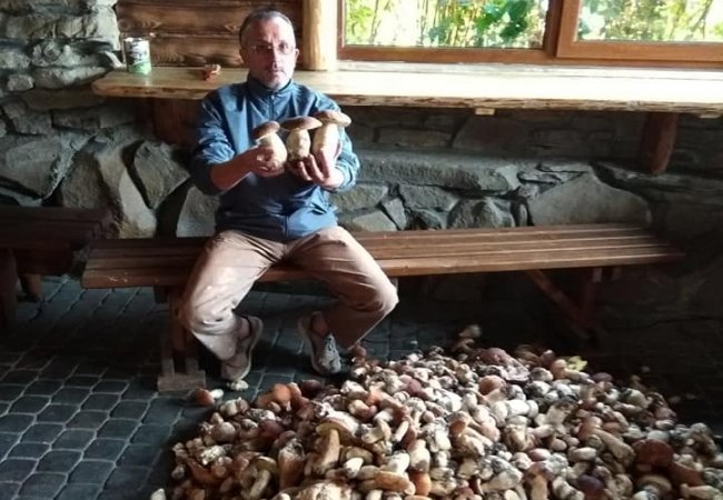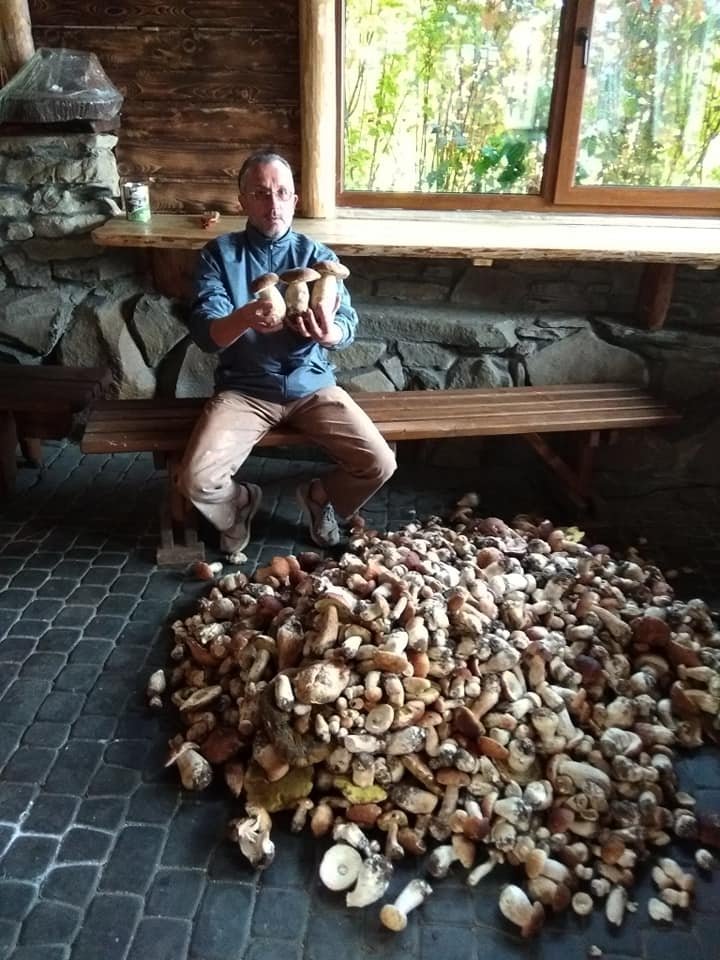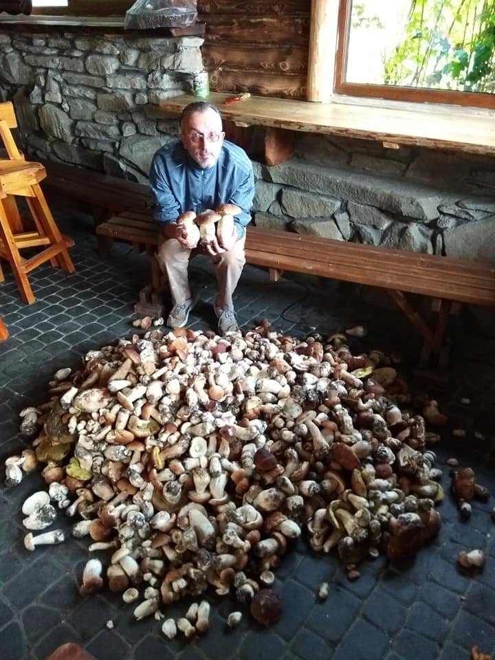 Луцький музикант Валерій Ленартович похвалився урожаєм грибів, які зібрав у Карпатах.