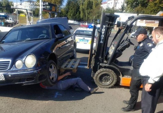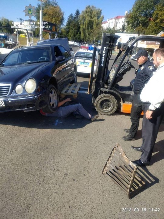 Патрульні прибули на вулицю Шевченка в Луцьку на виклик про дорожньо-транспортну пригоду без потерпілих. Але тут вони встановили, що Mercedes рухався дорогою, однак в якийсь момент водовідливна решітка, яка знаходиться в асфальті, потрапила під днище автомобіля.