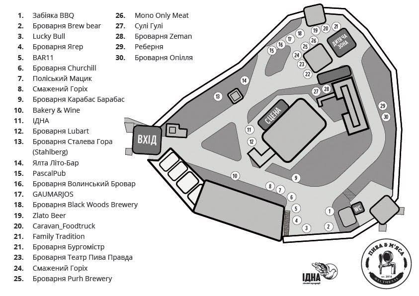 Щоб почастувати гостей фестивалю пивом, до Луцька з’їдуться 15 броварень з різних куточків України. Вони представлятимуть крафтові сорти пива власного виробництва. Окрім того, закуски та м’ясні страви представлять майже 20 рестораторів з різних міст. Вони тішитимуть не тільки смаками, але й незвичною подачею.