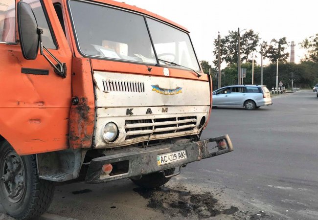 Так, попереду загальмував легковик Volkswagen, у нього в'їхала вантажівка Iveco, а її протаранив КаМАЗ.