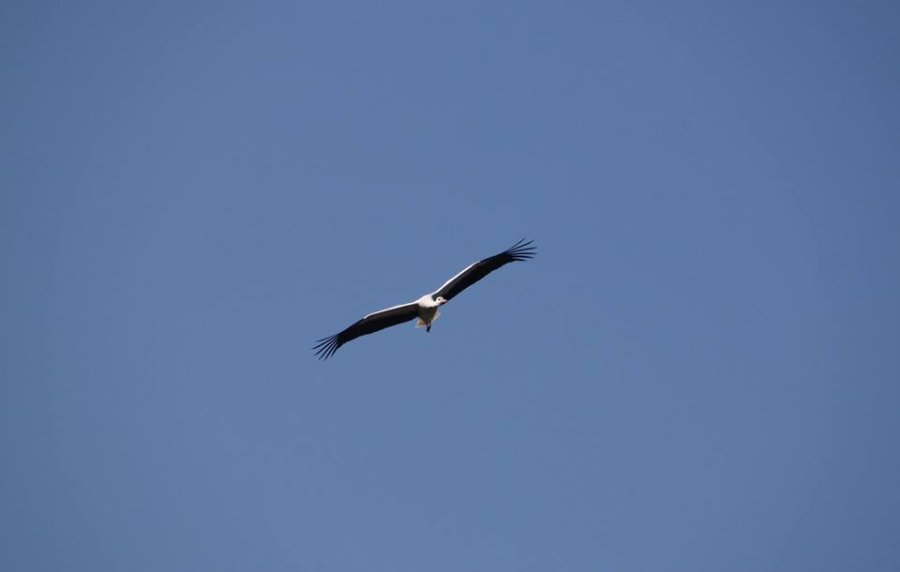 Лелека стояв серед невеликого ставочка, після чого злетів на гніздо, а згодом злетів у повітря і почав кружляти над місцевістю. 20 вересня 2018 року, с. Башлики, Ківерцівський район", - йдеться у дописі.