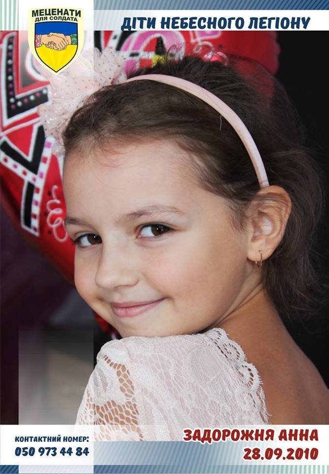 Задорожня Анна – маленька таткова принцеса, як лагідно називає доню мама, і є черговою нашою іменинницею. Її батько, Задорожній Андрій Володимирович, капітан, командир мінометної батереї 51-шої окремої механізованої бригади, загинув 1 серпня 2014 року в районі села Петрівське Шахтарського району Донецької області при підриві на міні.