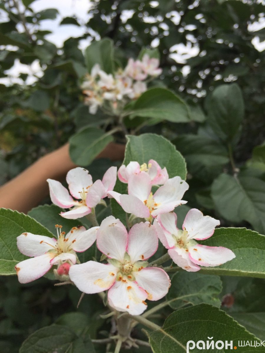 Житель Шацька, радник голови Шацької районної ради Ірина Хвисючик поділилася світлинами свого саду, у якому вдруге за літо зацвіла яблуня.