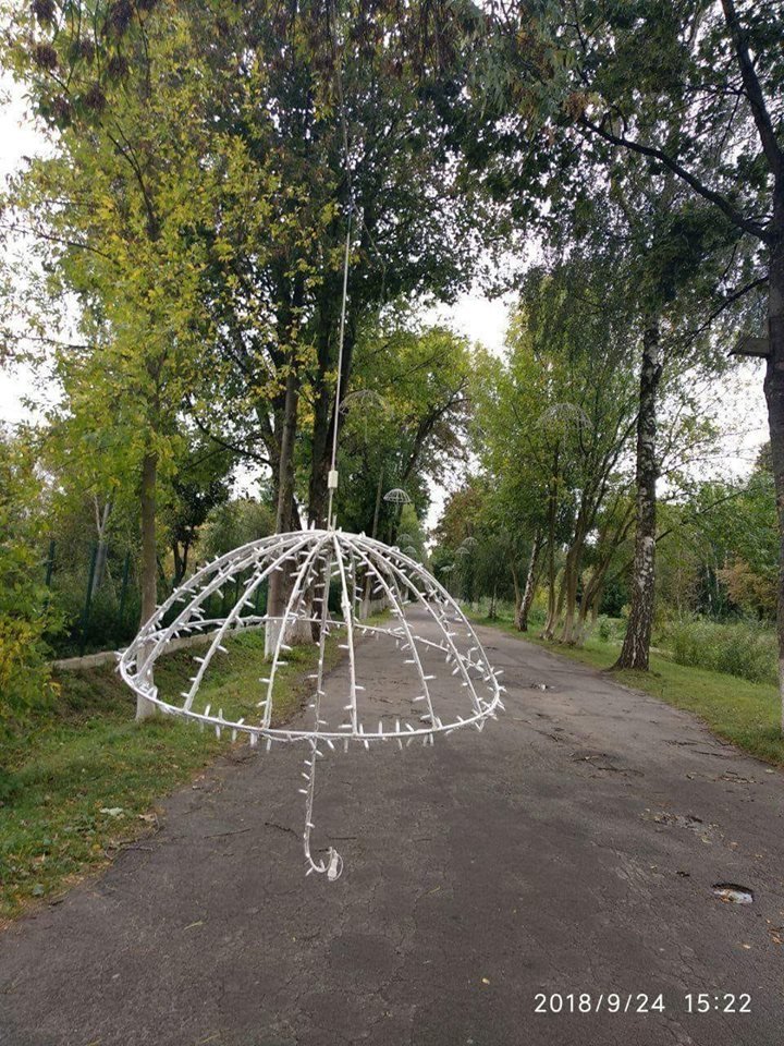 У Центральному парку культури та відпочинку імені Лесі Українки негода зіпсувала світлову декорацію на алеї парасольок.