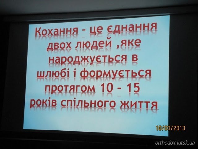 У свою чергу протоієрей Олександр Білінський наголосив на важливості чистоти дошлюбних стосунків, адже саме шлюб дає чоловіку і жінці почуття відповідальності, і саме в християнському шлюбі можливо розбудовувати родину.