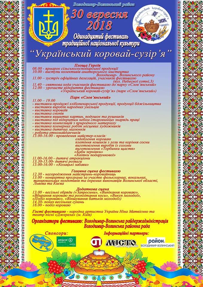 Свято розпочнеться об 11-ій годині дня. На гостей чекають виступи фольклорних колективів, майстер-класи, виставки, дитячі розваги.