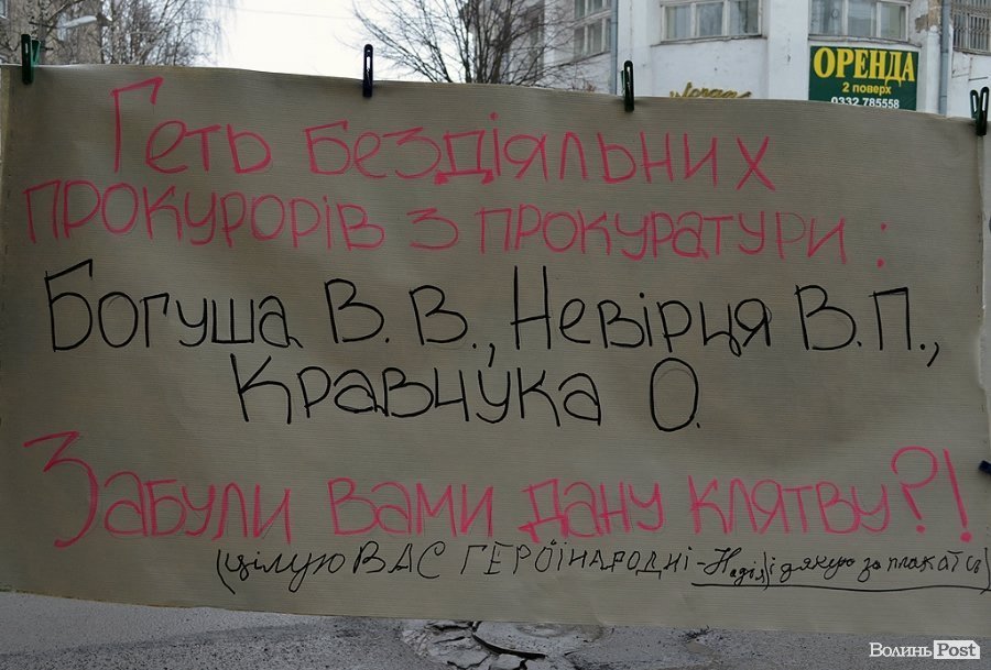 Під стінами прокуратури Волині 12 березня зібралося більше десятка людей, які незадоволені діями міліції й прокуратури.
