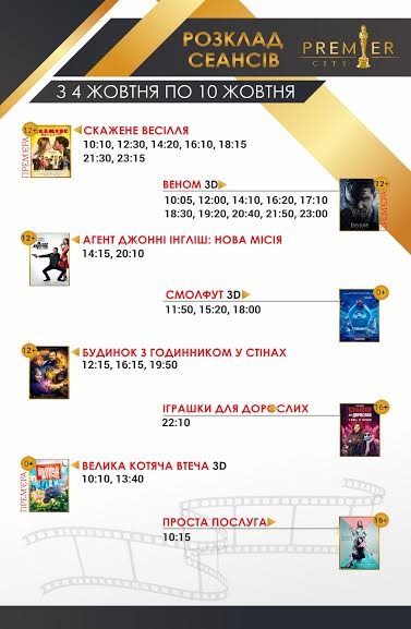Завтра, 4 жовтня, у кінотеатрі «Premier City» аж 3 прем’єрні покази фільмів.