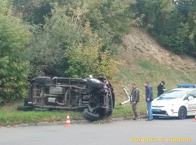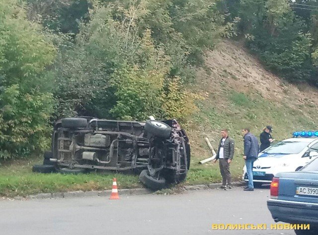 У Луцьку авто знесло стовп і перекинулося. ФОТО