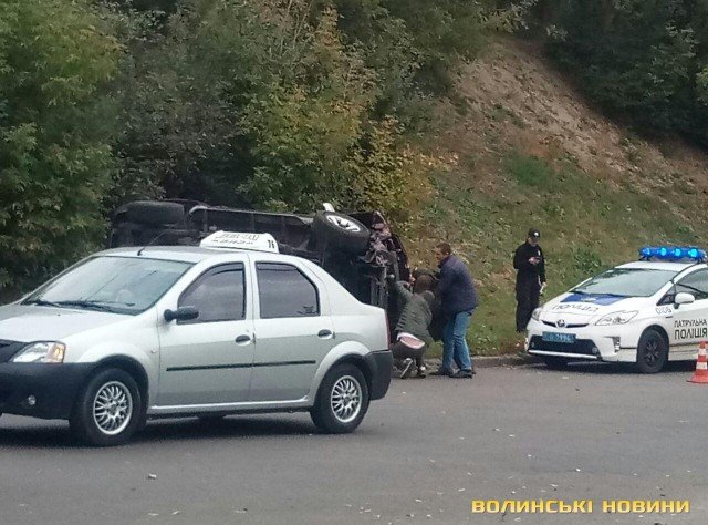 Так, близько 12 години на повороті з вулиці Глушець на Дубнівську на узбіччя перекинулась автівка.