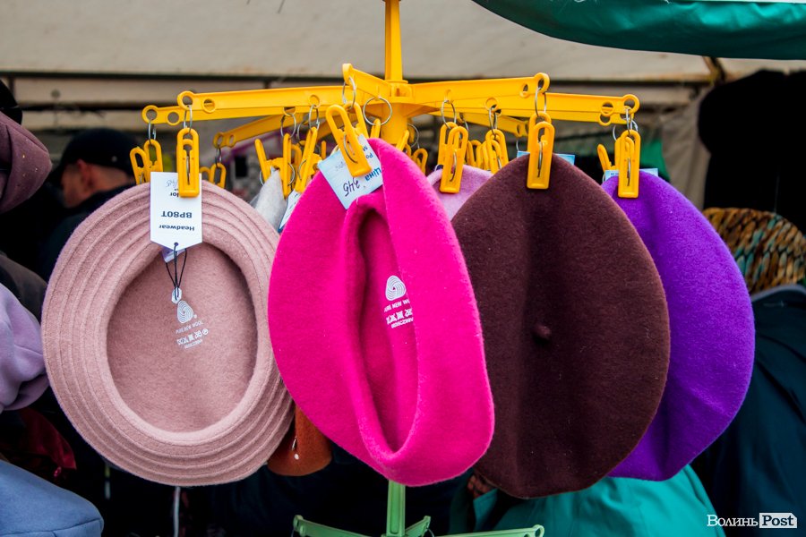Підприємець Микола Жарський привіз до Луцька шапки, які він виробляє під брендом «Клаус». Вироби продають у декілька країн Європи, зокрема у Фінляндію, Естонію, Болгарію. Тож на Волинь також привезли головні убори на будь-який смак: від шапок із чорнобурки чи норки до елегантних беретів та яскравих кепок.