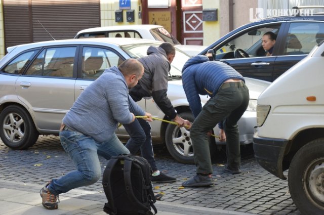Опісля ДТП автомобіль Mazda на іноземній реєстрації намагалися відсунути від Honda за допомогою тросів.