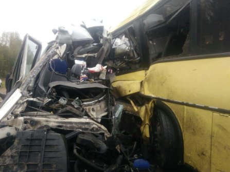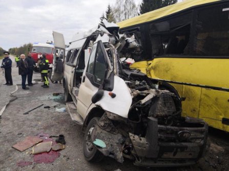 У Росії, в Калінінському районі Тверської області, маршрутне таксі й пасажирський автобус зіткнулися лоб у лоб.