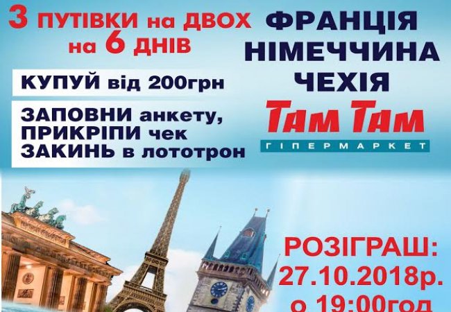 У гіпермаркеті «Там Там», що у ТРЦ «ПортCity», розіграш 3 путівок на 2-ох на 6 днів.