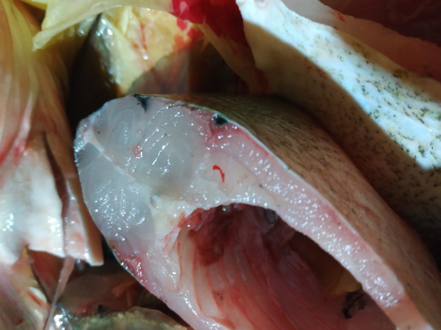 Тож, занепокоївшись, він почавши шукати в Інтернеті, в чому справа і з'ясував, що це личинки паразитів. Риба заражена, а хвороба має назву "постодиплостомоз".