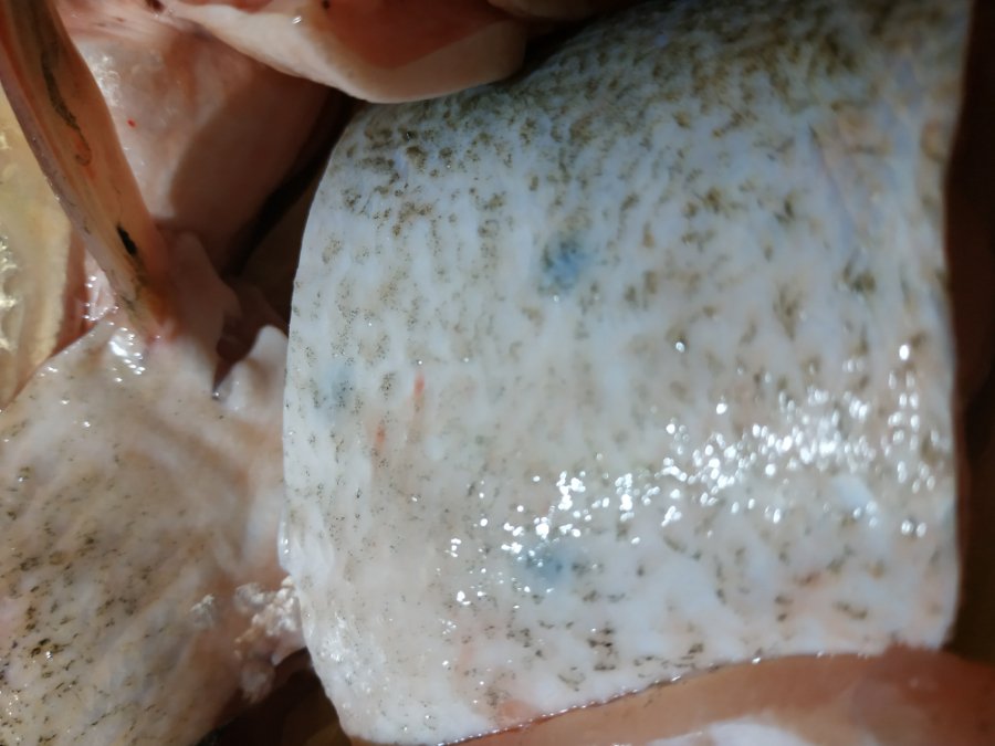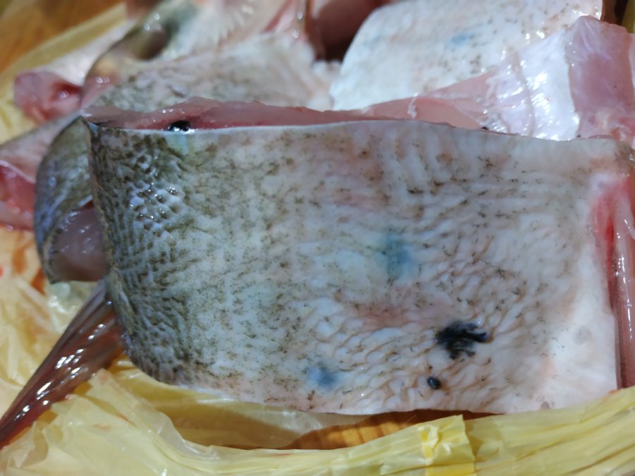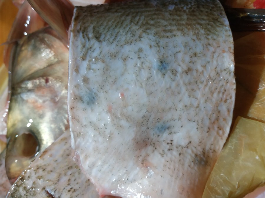 "Відразу я серйозну увагу не приділив, але коли почав різати на шматки, то помітив, що чорні п'ятна в'їлися в м'ясо. На рибі п'ятна не одиничні, вона ними досить таки рясно покрита (на жаль, на лусці їх відразу видно не було", - розповів чоловік.