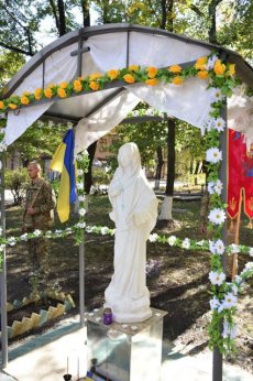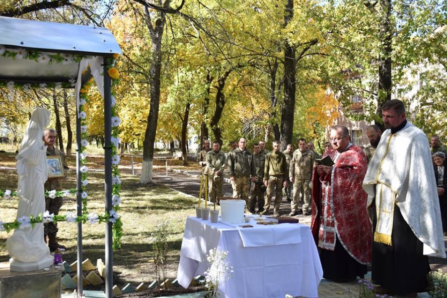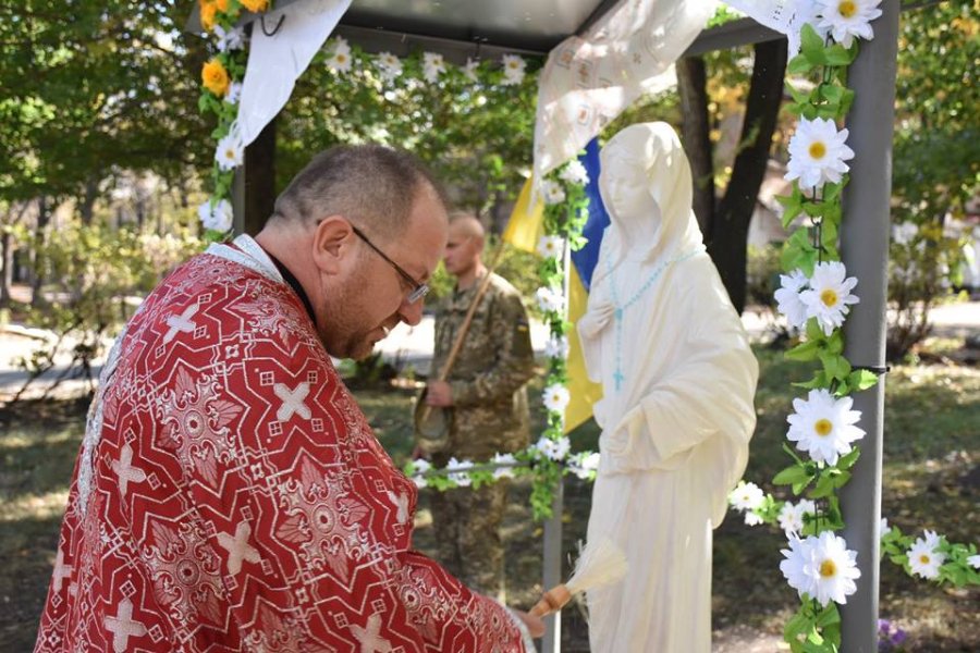 "Це святиня – для всіх місцевих жителів, яким за роки війни довелося чимало пережити! На згадку про нас, тих, хто їх захищав, у пам'ять про всіх, хто віддав життя за Україну, і як оберіг – нехай Мати Божа оберігає їх і всі прийдешні покоління українців, які житимуть на цій землі. Миру вам і Божого благословення… Слава Україні!" - мовив священик.