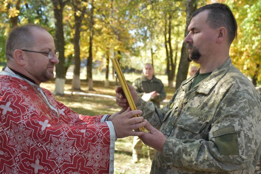 Недільного ранку на освячення каплиці з синьо-жовтими державними стягами та іменною хоругвою свого підрозділу зібралися військовослужбовці бригади та місцеві мешканці. Капелани бригади отець Ігор та отець Михайло провели урочисте богослужіння та освятили каплицю, окропили освяченою водою та миропомазали всіх присутніх. Наш «Батя», на рахунку якого це вже не одна така капличка, побажав усім, аби Матір Божа їх оберігала.