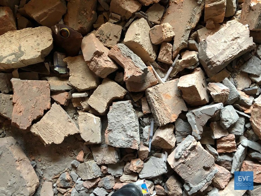 За словами дітей підпалити їх «бункер» могли наркомани. Вони також ходять сюди, щоб вколоти собі чергову дозу. Кажуть, що роблять це на четвертому поверсі або у підвалі. Там валяються використані шприци, ампули з-під лікарського засобу «Димедрол».