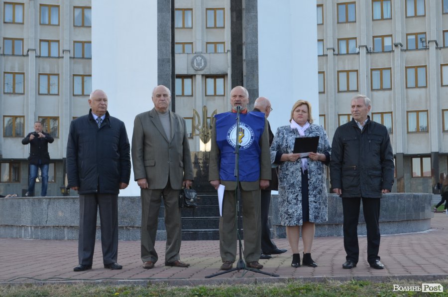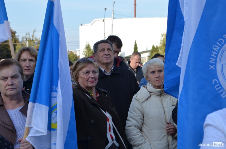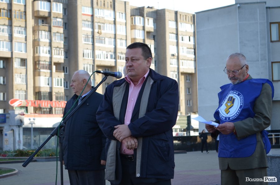 Відтак у рамках акції виступили представники галузевих профспілок, а також заступник голови Волинської обласної ради Олександр Пирожик, який висловив готовність підтримати дії мітингарів та за своїм підписом надіслати озвучені вимоги в органи влади.