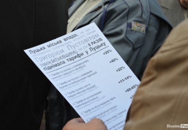 Під час акції її учасникам роздали інформаційні листівки, у яких ішлося про те, що за рік у Луцьку міська рада 8 разів підвищувала тарифи.