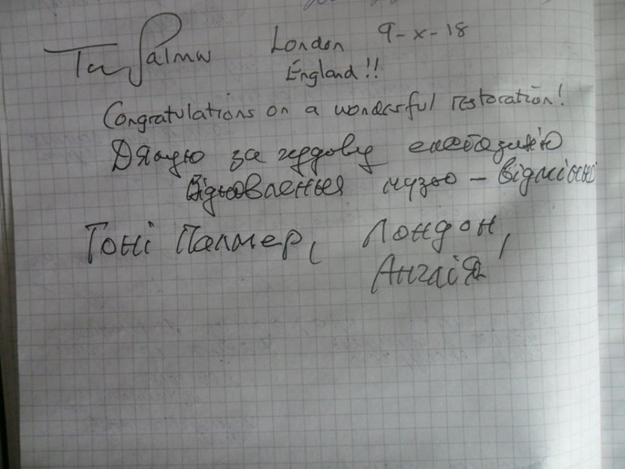 «Сьогодні музей відвідав гість з "туманного Альбіону". Відомий в Англії та світі кінорежисер Тоні Палмер залишив у книзі відгуків захопливий запис», – йдеться у дописі.