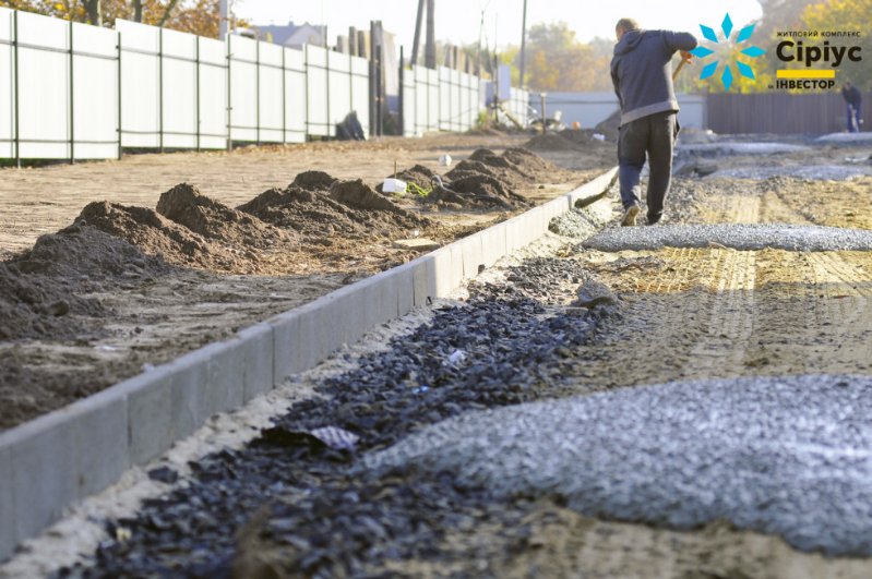 Також на всій території ведуть роботи з благоустрою, встановили бордюри та готуються до укладки бруківки, засівання газонів тощо.