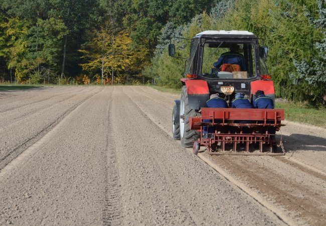 «Хочемо зробити запас сіянців на декілька років. На осінь 2019-2022 років. Щоб як мінімум до 2023 року у нас був запас сіянців дуба, якщо на наступні роки не буде врожаю. У рік ми використовуємо близько 2,5 мільйонів сіянців, бо створюємо дубових лісових насаджень 250 гектарів. Щороку 200-250 гектарів ми відновлюємо. Тому садибного матеріалу, який ми закладемо цього року, нам має вистачити на роки 4. Практикуємо посів осінню та весною. Різниця в тому, що глибина посіву жолудя на зиму – 10 сантиметрів. Коли ж сіємо весною, то глибина посіву – 7 сантиметрів», – зазначив Володимир Неводнічик.
