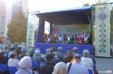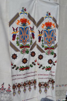 Окрім того, на площі розтавили інфрмаційні стенди, а атакож старовинні вишиті рушники, тож до "офіційного" початку фестивалю лучани та гості міста роздивлялися експонати та знайомилися із колоритними співаками.